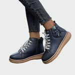 Sportske cipele u crnoj boji s modernim i mladenačkim dizajnom. Imaju vezice u svijetlosivoj boji koje stvaraju elegantan kontrast, te bočnu patentnu zatvarač za lako obuvanje. Mekana unutarnja podstava osigurava udobnost, dok izdržljiva protuklizna potplat osigurava stabilan hod. Idealan par za svakodnevno neformalno nošenje s daškom stila.