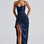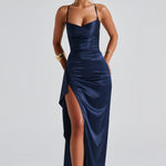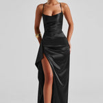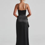 Meka energija s hrabrom ivicom. After Hours Maxi je dizajniran za noći koje se pretvaraju u uspomene. Izrađen od svilenog satena koji se spušta poput sna, ovaj maxi ima delikatne ukrštene naramenice, glatki zatvarač na leđima i visoki prorez koji se kreće s povjerenjem. Bilo da ste u klasičnoj crnoj ili izlazite u jednoj od naših drugih nijansi koje morate imati, ova haljina donosi beznapornu energiju glavnog lika svaki put.