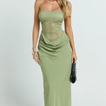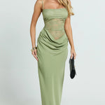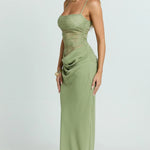 Mekana, zavodljiva i bez napora cool. Elysia Čipkasta Maxi stvorena je za trenutke glavnog junaka, pomislite na večere u zlatnom satu, noći na krovovima i tu energiju "odakle ti je haljina?". Sadrži delikatni čipkasti korzet i fluidnu drapiranu suknju koja se lijepo prilagođava tijelu, dok ostaje lagana i bez napora. Silueta s niskim strukom dodaje modernu notu, balansirajući romantiku s povjerenjem. Elegantna, ali nikada previše naporna, ovo je haljina koju birate kada želite izgledati nevjerojatno bez previše razmišljanja.