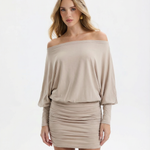 Zašto će vam se svidjeti: ✔ Opušteni izrez — Elegantno, ženstveno i suptilno senzualno ✔ Drapirani gornji dio — Opušten i bez napora s mekim, prozračnim osjećajem ✔ Suknja s nabranim detaljima — Laskavi, tijelu prilagođeni kroj koji izravnava oblik ✔ Mekani rastezljivi materijal — Prati vaše pokrete i ostaje udoban cijeli dan ✔ Minimalistička silueta — Jednostavna, čista i lako se kombinira ✔ Svestran izgled — Obucite je s potpeticama ili zadržite ležeran s čizmama