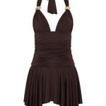 Nabrana, s vezanjem oko vrata i upravo onoliko provokativna koliko treba – Tease Mini Haljina stvorena je za noći koje nikada nećete zaboraviti. S vezicama na zlatnim vrhovima i lepršavim volanom, to je vaš izbor za trenutnu energiju glavnog lika. Uparite je s kitten potpeticama i zlatnim nakitom za ultimativni sjaj.