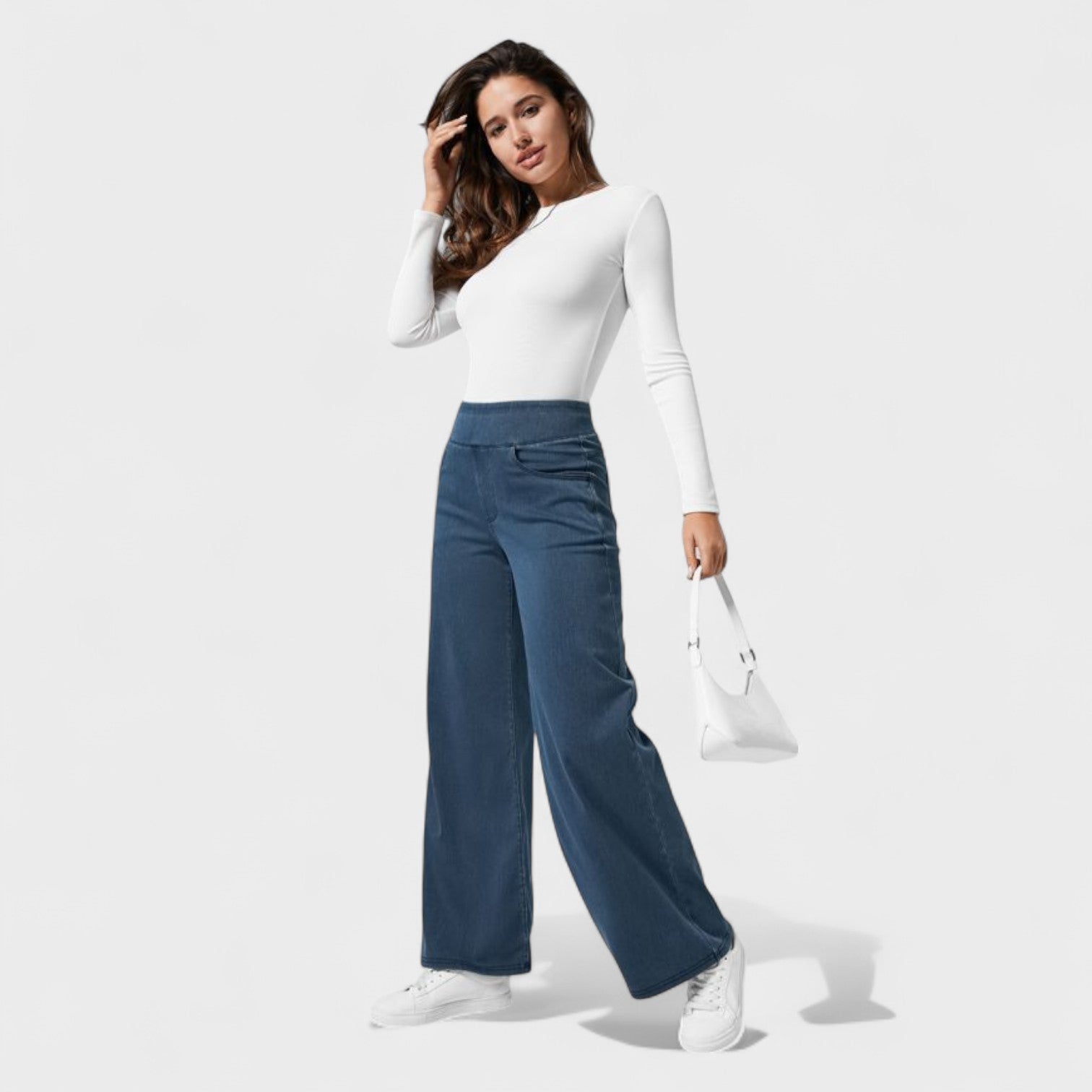Otkrijte savršenu ravnotežu između udobnosti i elegancije s hlačama od traperica Clara. Njihov dizajn širokih nogavica izdužuje siluetu bez žrtvovanja udobnosti, idealno za aktivne žene koje žele izgledati dobro svaki dan.