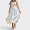 Ove stilizirane midi haljine izrađene su od luksuznog satena ili visokokvalitetne mješavine tkanina, koja stvara rafiniranu siluetu s prekrasnim sjajem. Prilagodljivi korzet, kvadratni izrez i nježne naramenice lijepo ističu ramena i struk.